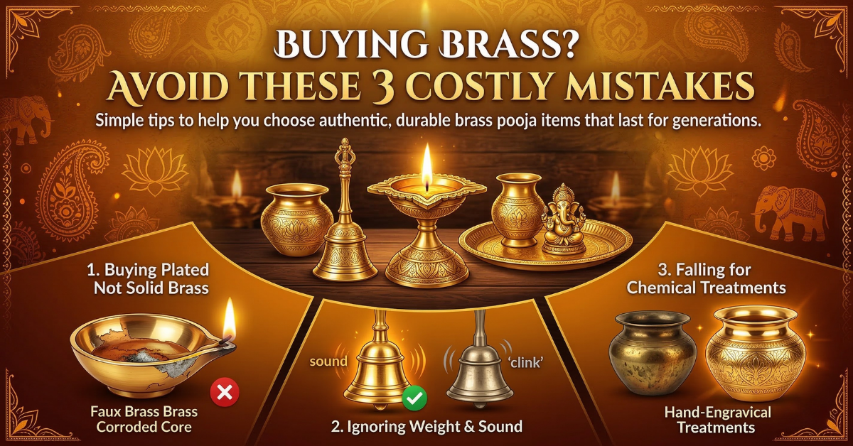 A lot of buyers unknowingly make simple mistakes while purchasing brass pooja items. And those mistakes can lead to disappointment later — the item loses shine quickly, turns out not to be pure brass, or simply doesn’t last long.