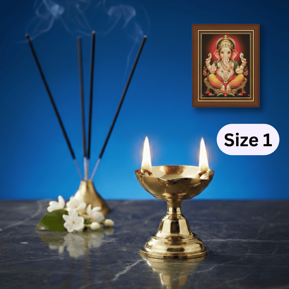 The 2-Faced Brass Dasara Panti Size No.1 is a timeless ritual lamp designed to elevate your daily aarti and festive pooja. Crafted in pure brass, this two-faced Brass diya with an elevated stand allows dual flames to burn steadily, symbolising balance, protection, and divine presence.