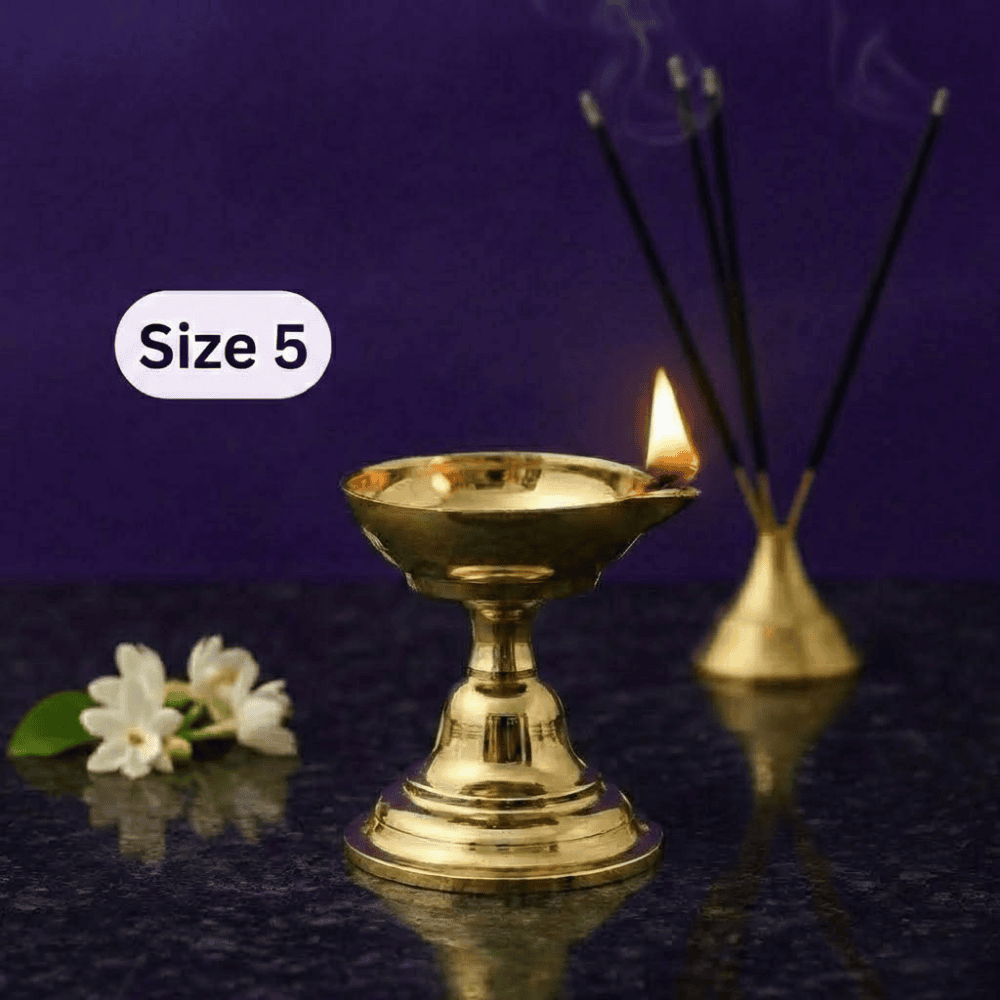 From home mandirs to sacred festival rituals, the Dasara Brass Panti Single Face with Stand Size No.5 brings timeless devotion into everyday worship. Crafted in pure brass, this traditional oil lamp preserves age-old pooja practices, allowing a steady flame to rise with clarity, reverence, and spiritual focus.