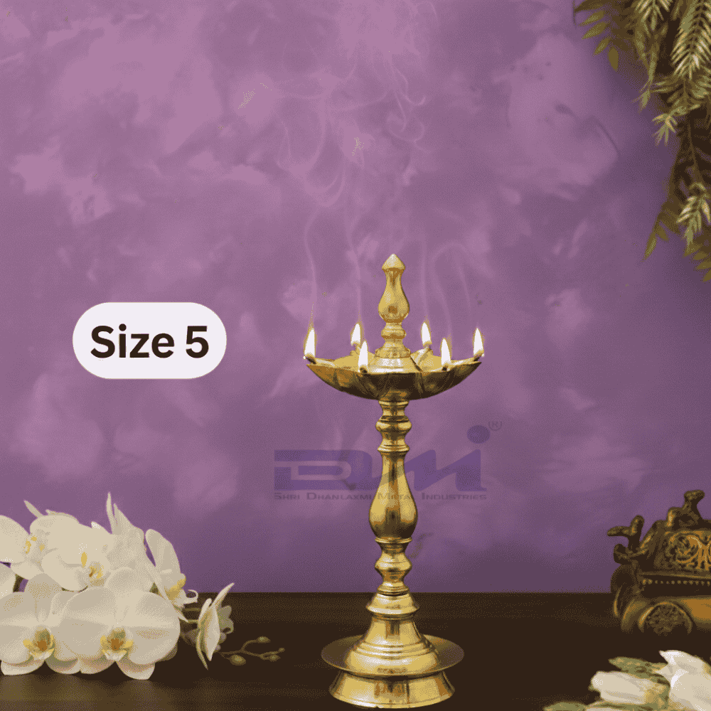Elevate your sacred rituals with the DMI 7 Faced Kalas/Kalash Samai (10 Inches) Plain Pattern – Size No.5, a beautifully sculpted traditional lamp inspired by the sacred Kalas, a symbol of abundance, purity, and divine energy. Crafted from premium brass, this samai features seven diya chambers, allowing complete spiritual illumination during worship.