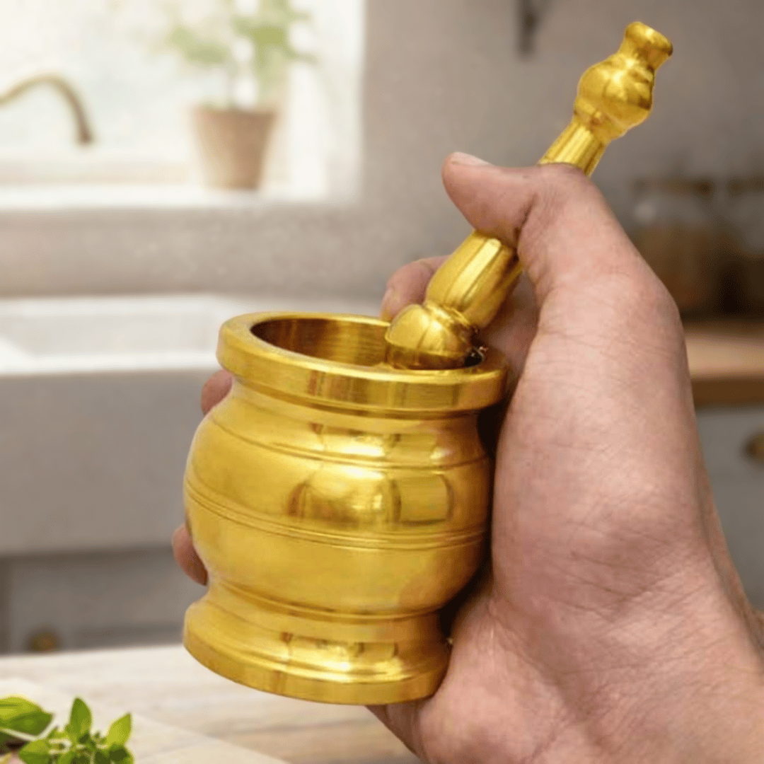 From ancestral kitchens to modern homes, true Indian flavors are born through slow, mindful preparation. The DMI Brass Khalbatta (Mortar and Pestle) is crafted to preserve age-old culinary rituals, allowing you to grind spices, herbs, and chutneys the traditional way, retaining aroma, texture, and taste.